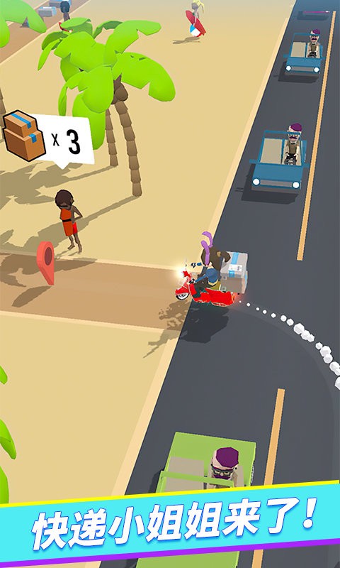 1、关卡挑战送件:每个关卡都有不同挑战,玩家需给行人等让行,安全地把快件送到客户手中以获取报酬。