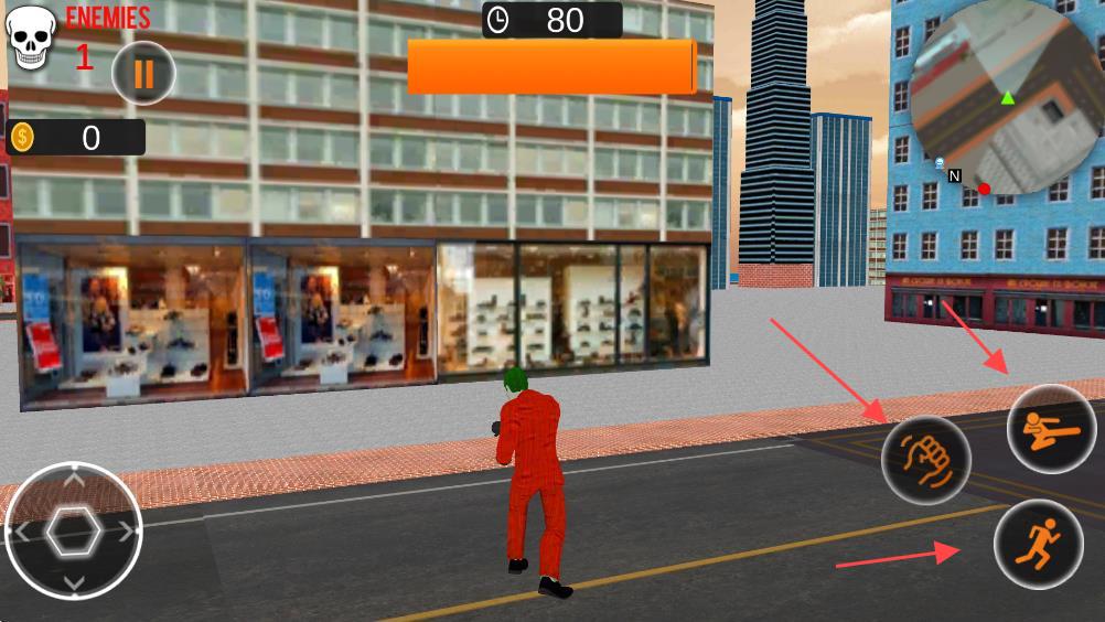 2、双模式战斗体验:“剧情模式”还原黑帮复仇主线,“生存模式”挑战无尽小丑浪潮,支持动态难度调节(新手辅助/硬核模式)适配不同玩家。