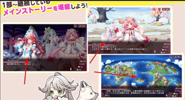 2、多元收集养成体系:通过剧情关卡、限定活动、甜蜜召唤等途径获取角色,每位少女的“甜度等级”影响属性成长,解锁专属剧情与外观变化。