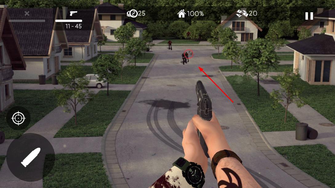 2、枪支准心对准僵尸,进行射击。