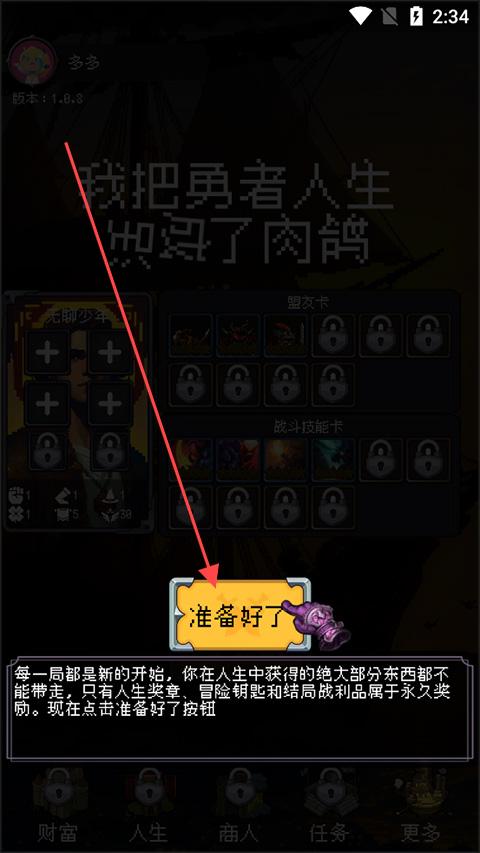 1、开局策略选择:身世卡选经验量少频繁触发型,性格卡加力量或敏捷,命运卡避开声望任务,通过退出刷新机制刷出理想开局,为后续人生发展奠定基础。