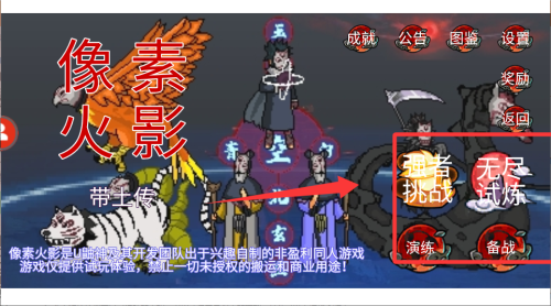 像素火影带土传最新版以经典动漫角色为主角,打造沉浸式忍者对战体验。游戏采用复古像素画风,完美再现原作中标志性的忍术特效。丰富的角色图鉴系统收录大量忍者资料,玩家可随时查阅角色属性和技能详情。三大核心玩法模式满足不同需求,无尽试炼考验持久战力,强者挑战提供高强度对决,演练模式则便于熟悉操作。经过优化的战斗系统使连招更加流畅,忍术释放更具视觉冲击力。