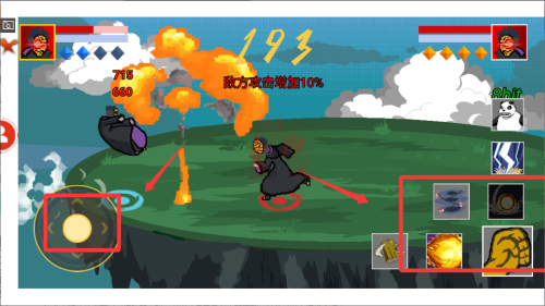 3、进入游戏后左手可控制方向,右手可放技能来打败对手。