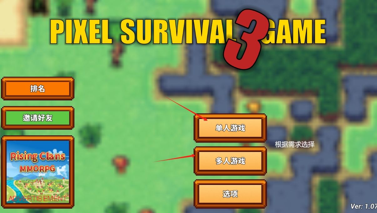 1、打开像素生存3,依据自身需求点击单人游戏或多人游戏开启冒险之旅。
