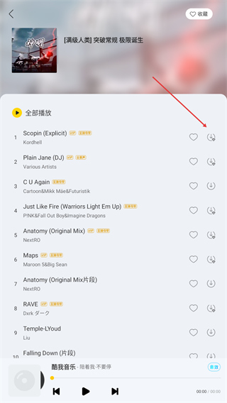 2、进入歌单详情页面内,选择歌曲并点击右侧下载的按钮。