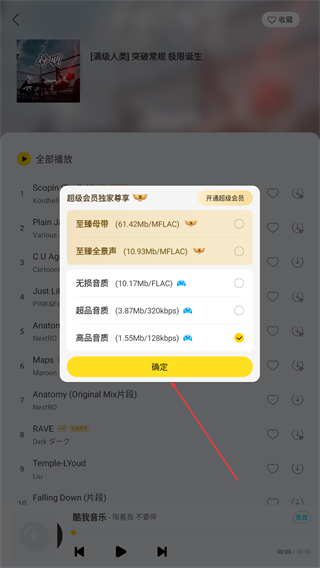 3、当页面弹出下载的音质后,点击确定的按钮即可下载至U盘。