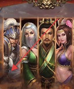 1、进入游戏界面(三国题材游戏,含武将“张辽”“黄月英”等)后,点击红色箭头指向的武将。