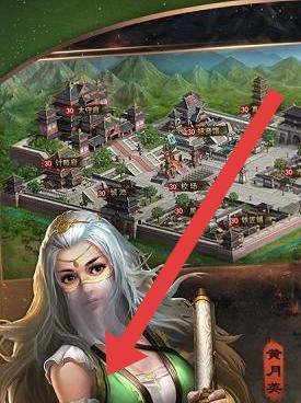 2、游戏中按红色箭头方向(第二张图黄月英指向的城池建筑),发展城池(升级建筑、生产资源)。