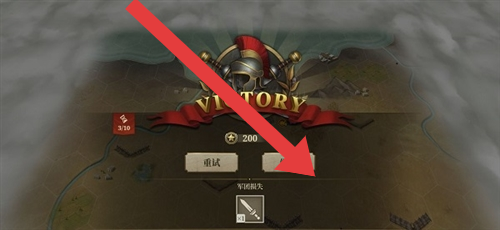 3、战斗胜利后(显示“VICTORY”界面),点击红色箭头指向的奖励领取按钮(如武器图标),获取战利品(资源、装备等)。
