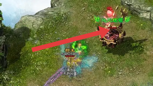 1、操控角色(道士)挑战【地穴统领】,释放技能(天书郑重),注意血量(5985/5987)。