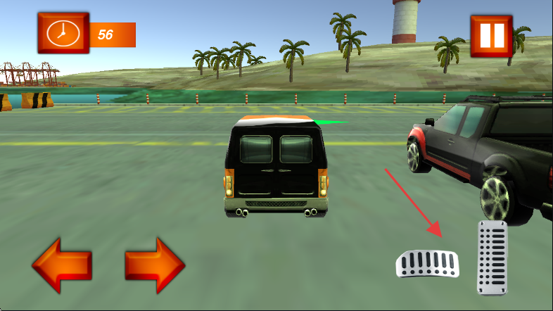 3、利用右侧踏板按钮(油门等)控制车辆前进速度,在限时内完成停车等任务,注意时间和操作配合。