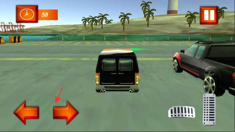 2、驾驶车辆时,通过左侧左右箭头按钮控制方向,调整车辆行驶角度,避开周围车辆。