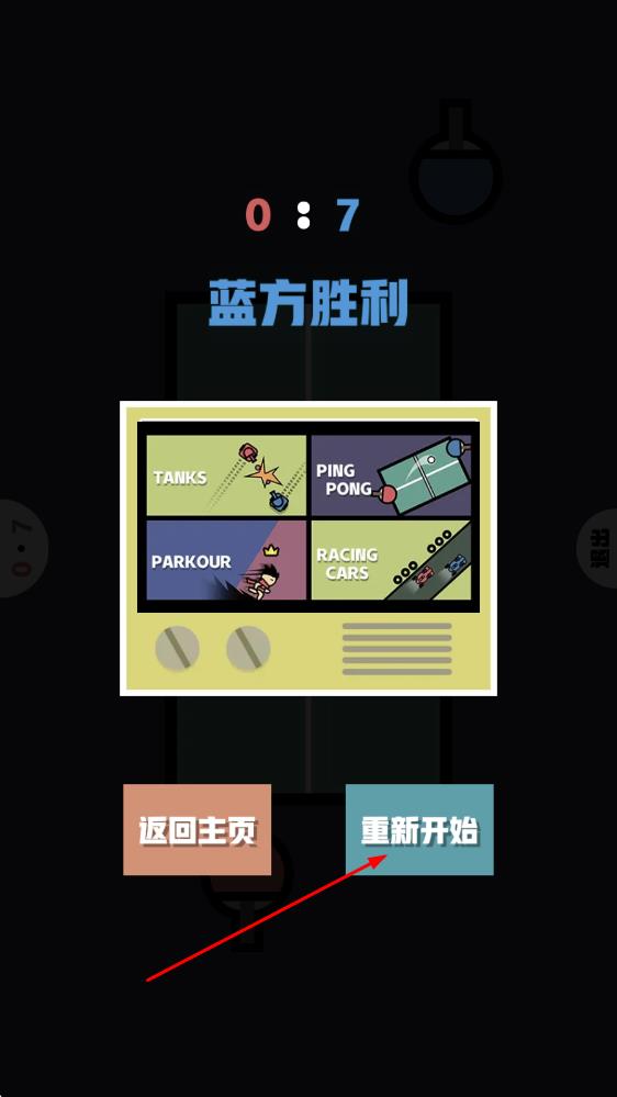 3、达成游戏获胜条件,比如乒乓率先得11分、相扑将对手挤出界、井字棋率先三子连珠等,即可赢得胜利,结束对局后可选择再战或切换其他游戏。