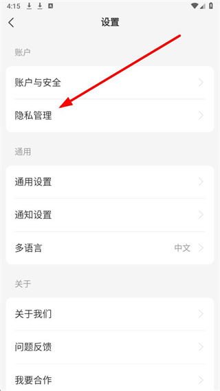 2、在设置界面,点击隐私管理选项,进入隐私管理页面。
