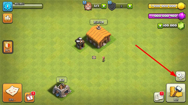 1、进入部落冲突界面,找到右下角齿轮样式的设置选项并点击,进入设置页面。