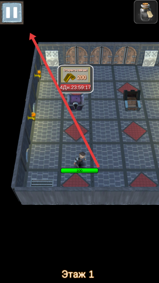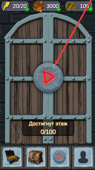 1、在游玩初始界面,跟随箭头指引点击红色播放按钮,加载后进入以楼层探索为主题的冒险场景。
