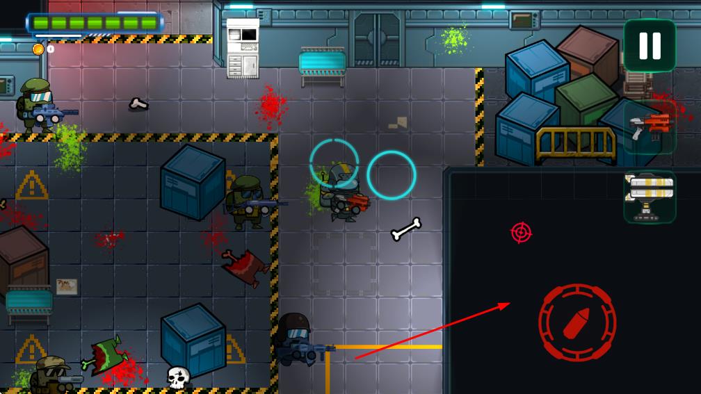 2、战斗过程中,左手滑动屏幕左侧区域控制角色移动走位,躲避僵尸攻击,右手点击屏幕右侧发动射击,根据僵尸类型和距离调整射击方向,时刻留意战场局势。