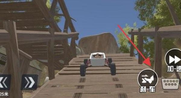 1、操控越野车,利用“刹车”“加速”等按键,在木制坡道等地形行驶,应对障碍。