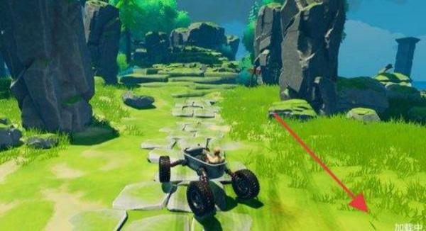 3、在草地、石路等开放场景,继续竞速,通过箭头指引方向,完成越野挑战。