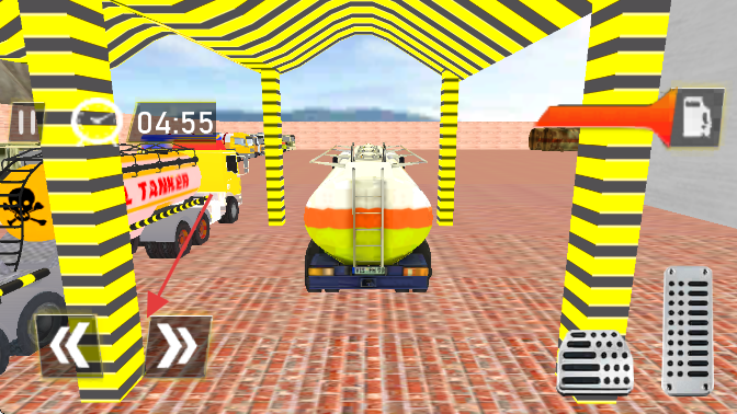 3、点击箭头指向的油门踏板,操控油罐车前进,推进运输任务。
