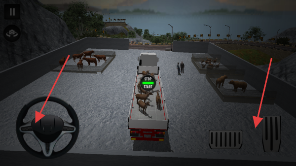 3、驾驶时,用左侧方向盘控制方向,右侧踏板控制加速/刹车,按场景提示(如运输动物),安全驾驶,达成目标。