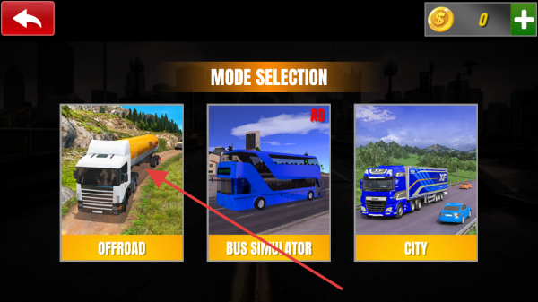 2、在模式选择,选箭头指的【OFFROAD】,进入越野驾驶场景,操控油罐车,适应复杂地形,完成运输任务。