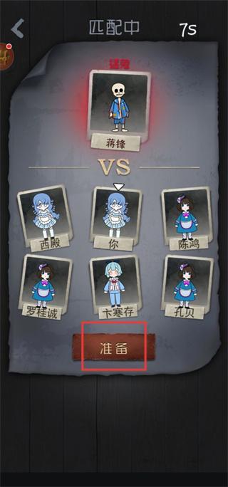 2、选择好游戏模式后,需要匹配一段时间,人齐了就可以开始游戏了,这里我们需要点击准备按钮。