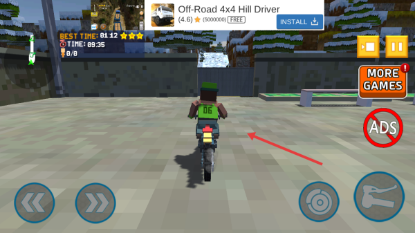 1、点击【TapTo Ride】,进入《BlockyMotoBikeSIM: Winter Breeze》游戏。