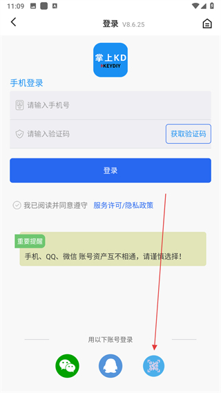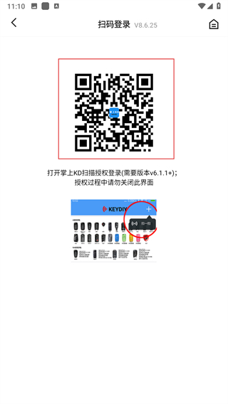 4、打开掌上KD的扫一扫功能,扫描当前界面的二维码完成授权登录。