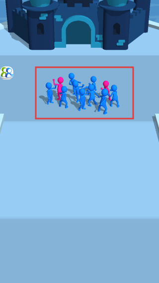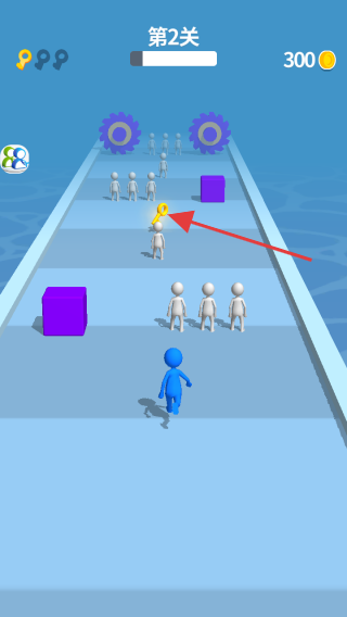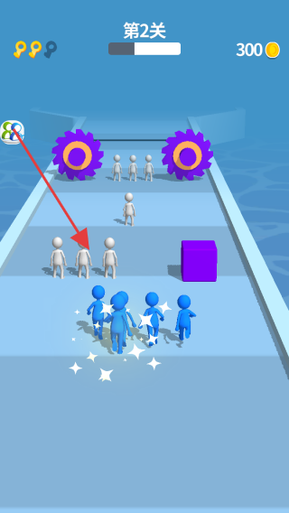 2、继续前行,集更多白色小人,让蓝色队伍变多,借数量,避障碍,向关卡终点前进,增强战力。