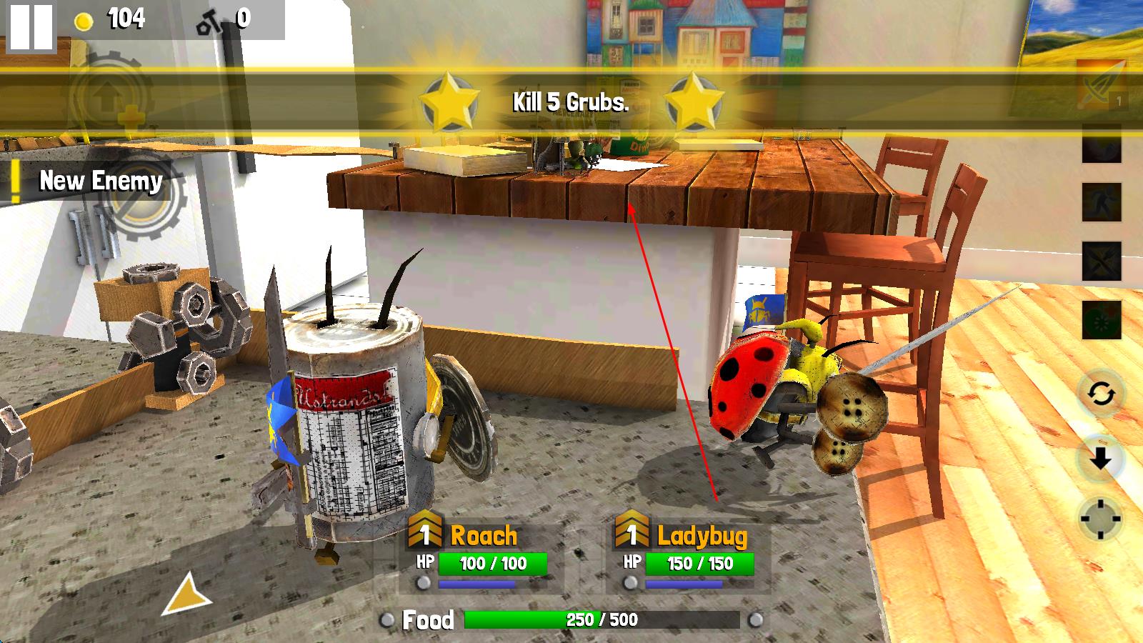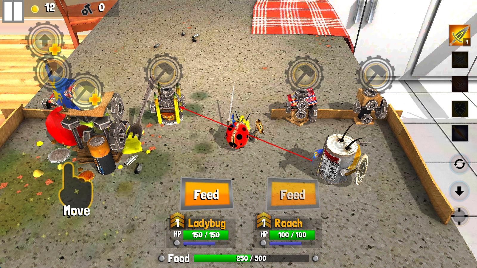 1、沉浸式3D场景:金属质感的明亮环境搭配爆炸光效,子弹横飞的战斗场面极具视觉冲击,还原写实昆虫战争场景。