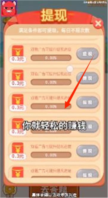 1、完成任务满足提现条件,点击提现按钮,获取奖励,积累收益。