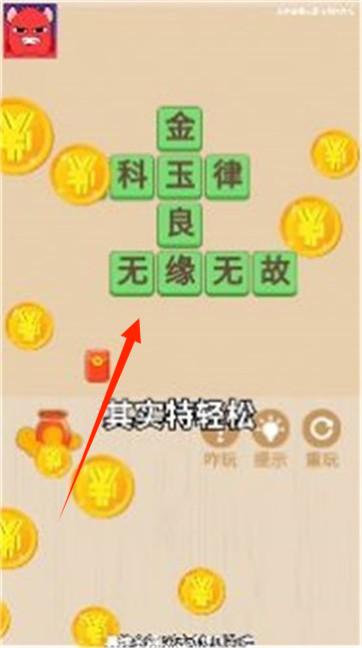 3、拼接文字,形成正确词语,收集金币,解锁新关卡,持续挑战。
