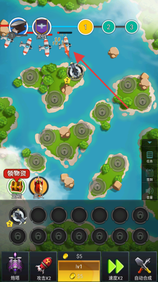 3、建筑就位后,点击【速度X2】等功能,触发战机支援,借助空中火力打击敌人,推进关卡。