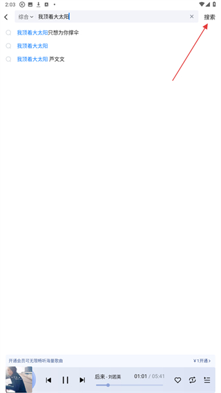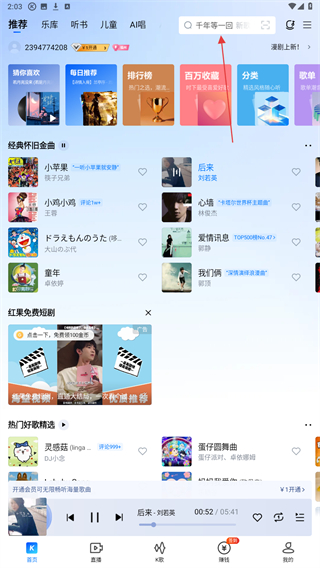 1、打开酷狗的应用,在首页点击上方搜索框。
