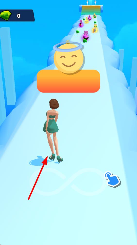 1、进入后操控女孩在道路上奔跑,滑动屏幕躲避坑洞、减速带等障碍,遇到分岔路时根据天使(正确)与魔鬼(错误)的提示选择前进方向。