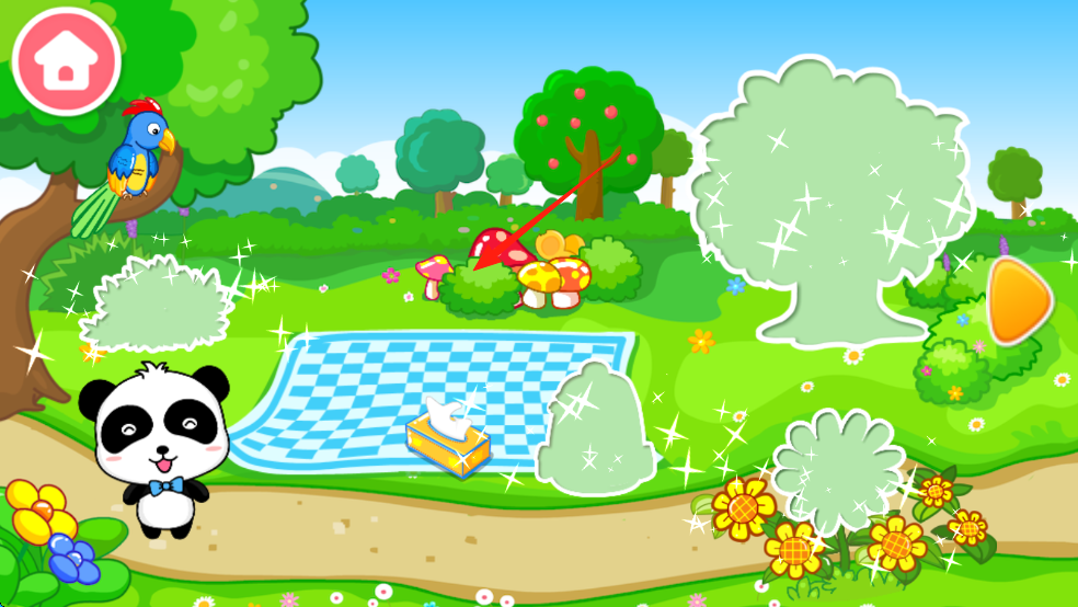 3、场景点缀学应用:在“萌趣伴学屋”里,宝宝将数字连线出的物体用于点缀池塘、农田等场景,把数字学习与场景应用结合,加深对数字的理解。