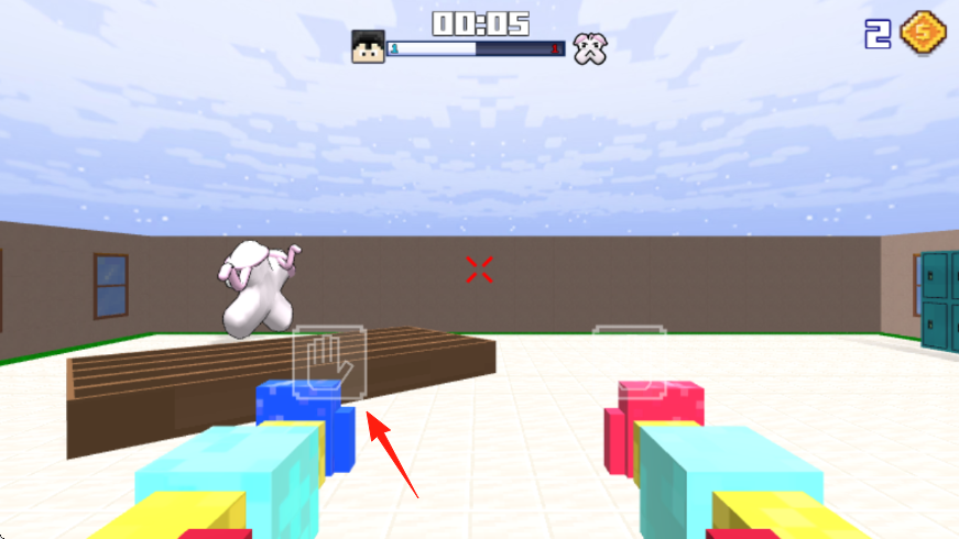 3、道具互动利用场景道具(木板方块),遮挡跳跃,改变战斗地形,击败敌人,完成限时挑战(00:05)。