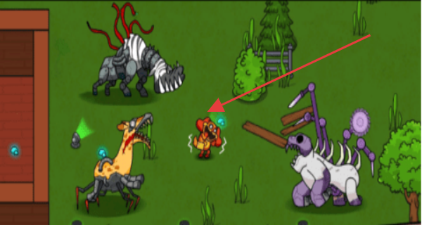 3、战斗中,操控箭头指向的红色小狗角色,释放技能对抗周围机械兽,争取生存或击败敌人,完成挑战。