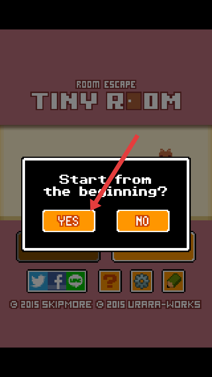 1、小房间游戏启动弹出确认窗口,需要点击左侧橙色【YES】的按钮,确认从头开启密室逃脱冒险。