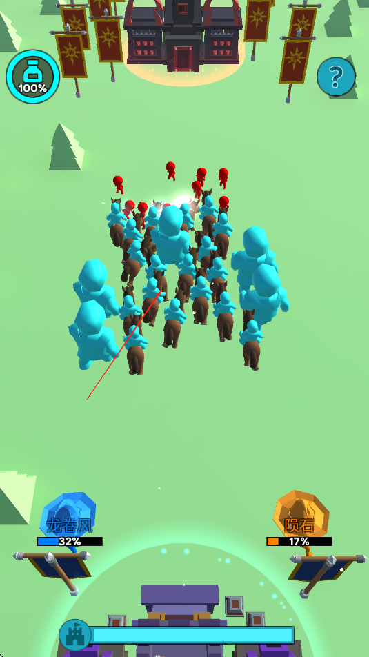 2、阵型组合技巧:前排绘制盾牌形状召唤肉盾单位,后排绘制弓箭图案布置远程输出,滑动屏幕拖动阵型变换,形成包围或防御阵型。