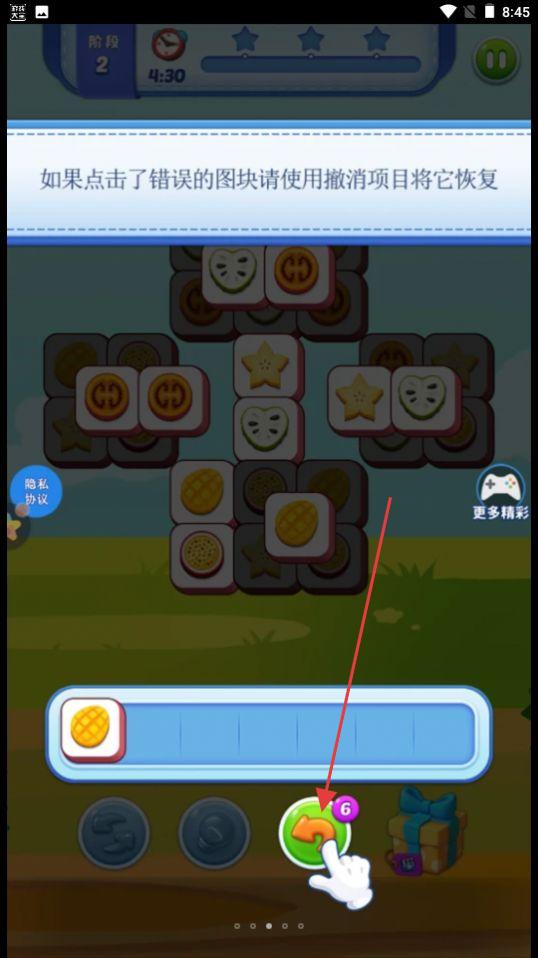 2、若误点方块,使用撤销道具恢复,避免错误操作影响消除进程。