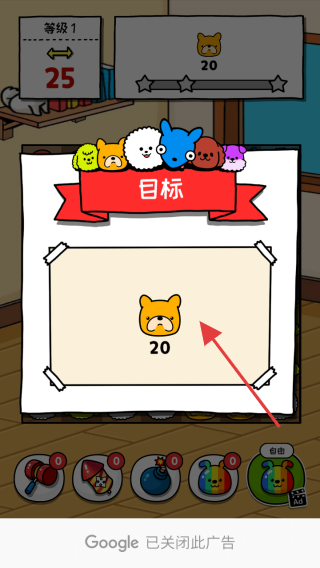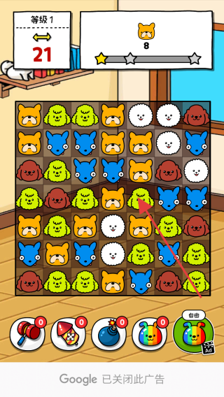 3、在消除关卡,观察宠物分布,点击同色相连宠物消除,利用道具助力,朝着收集20个黄小熊目标推进。
