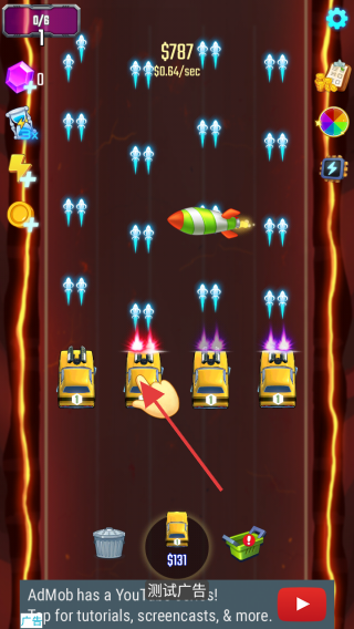 2、战斗时,点击黄色车辆放置,借助其发射弹幕,搭配火箭等道具,消灭上方来袭敌人,守护阵地。