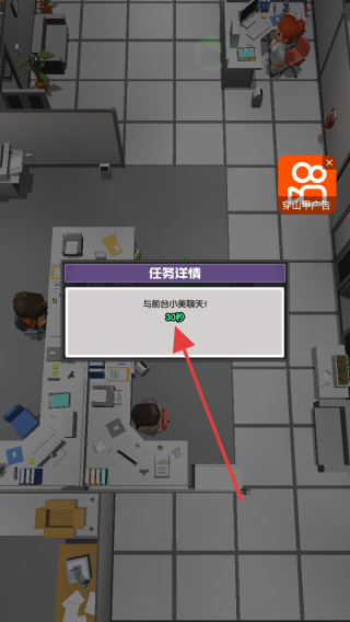 2、查看【任务详情】,当前需和小美聊天,找到对应同事,在不被老板察觉时,完成聊天互动。
