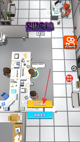 1、进入别被炒鱿鱼Don't get fired游戏,点击【开始摸鱼】,开启职场摸鱼挑战,注意避开老板,别被发现。