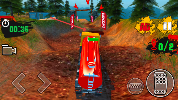 3、操控红色油罐车,沿山地赛道按checkpoint指示行驶。