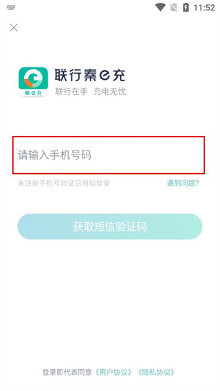 3、进入登录界面后,在请输入手机号码的输入框中填写对应的手机号码信息。