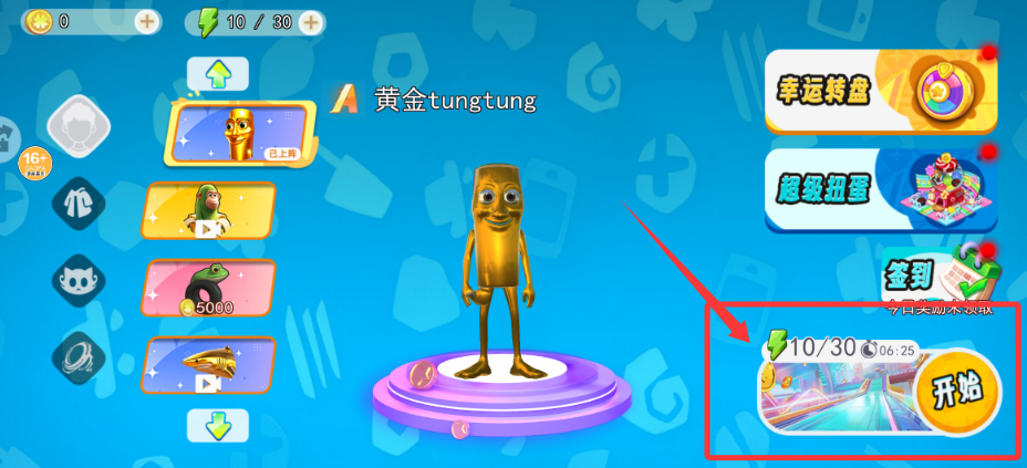 1、进入游戏点击右下角“开始”,进入紧张刺激的冒险世界中。