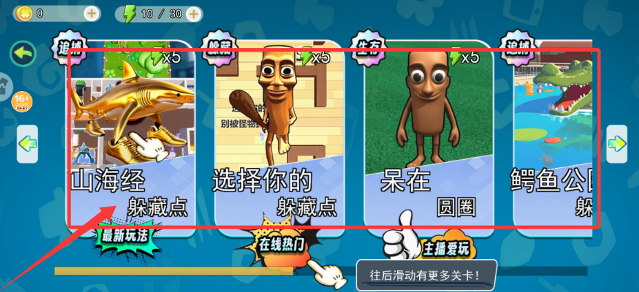 2、页面中可挑选“山海经躲藏点”等模式开启挑战,体验多样玩法。